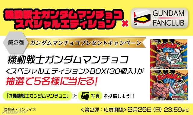 公式アプリ「ガンダムファンクラブ(GFC)」では、第一弾に引き続き、「機動戦士ガンダムマン チョコ<スペシャルエディション>」プレゼント企画第二弾が好評実施中だ。