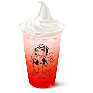 はちみつとガラナを配合し、あざやかな赤色が特長のごくごく飲めて爽快感ひろがる炭酸ドリンクに、コクがありなめらかなソフトクリームが乗ったデザートドリンクです。