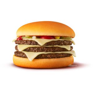 つなぎの入っていないジューシーな100%ビーフパティが3枚も入った魅惑のトリプルビーフパティに、クリーミーでコクのあるホワイトチェダーチーズを3枚サンドしました。