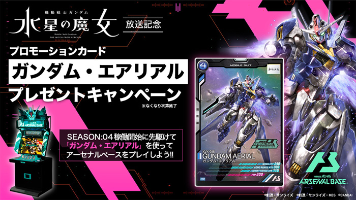 アーケードカードゲーム「機動戦士ガンダム アーセナルベース」で使用できるプロモーションカード「ガンダム・エアリアル」を、10月1日(土)より店頭にて無料配布。