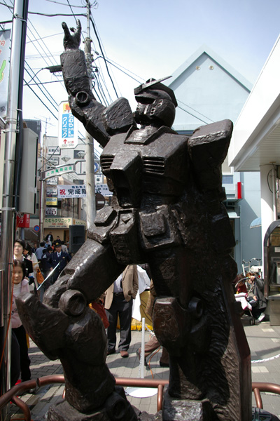ガンダムのブロンズ像、西武新宿線 上井草駅前の大地に立つ!