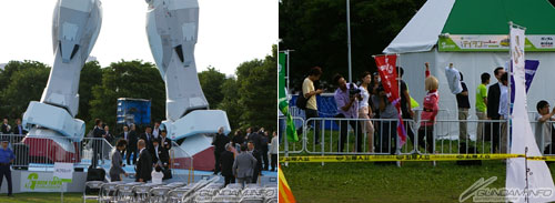 富野監督からは、いわゆるおもちゃカラーの配色のガンダムは、緑の大地にはミスマッチだと思っていたが、実はよく似合う事を再発見したというエピソードを頂き、古谷徹氏からは、「“GREEN TOKYO ガンダムプロジェクト”、いきまーす!」のセリフで開会宣言を頂きました。