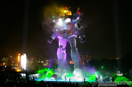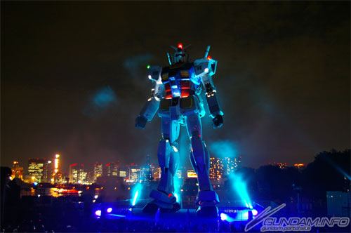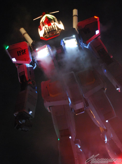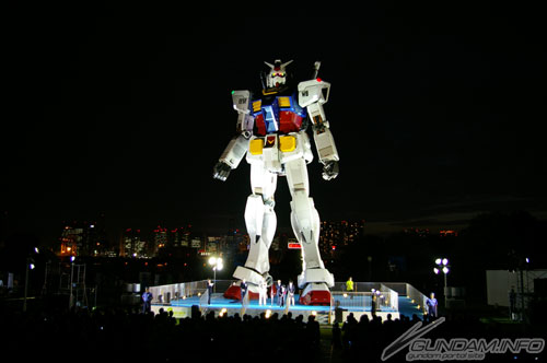 セレモニー終了後、闇夜に浮かぶガンダムをパチリ。