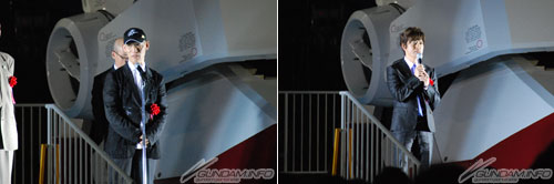 最後はこの三方で記念撮影。退場の際に富野監督をエスコートするGACKT氏。