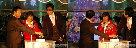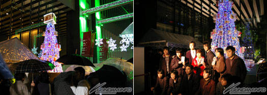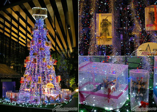PSP「機動戦士ガンダム ガンダムVS.ガンダムNEXT PLUS」の発売を記念して設置された、ガンダム一色にデコレーションされたクリスマスツリーの点灯式の模様をさっそくレポート!