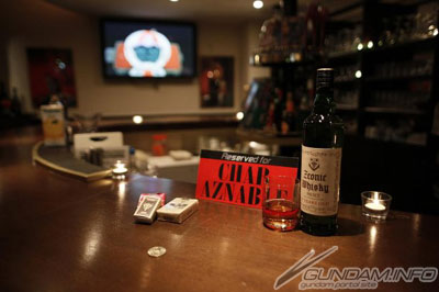 店内には貴重なガンダムグッズが展示される他、アルバムのジャケット写真「あるジオン勢力下にバー」をリアルに再現。BGMには「GUNDAM UNPLUGGED ~アコギ de ガンダム~ A.C.2009」の収録曲が流れる。