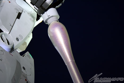 昨年のお台場では、ロールアウト直後の新品のイメージで設置されたが、今回は地上での激戦をくぐり抜けてきた、ジャブロー戦の後のイメージにしてあるとのこと。