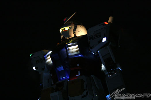いよいよ今月24日に一般公開が迫った静岡の立像「RG 1/1 RX-78-2ガンダム」。 今回は夜間のライトアップとミストによる演出、そして新たに装備されたビーム・サーベルをレポート!