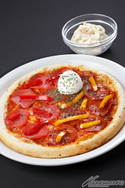 アレルヤ×マリー 激辛サラミとソフトサラミのハーフ&ハーフピザ(アレルヤ)+スパゲティサラダ(マリー) |