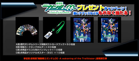 キャンペーンはOUTLET館を除く全国の「ドン・キホーテ」、「MEGAドン・キホーテ」、「長崎屋」のクーポン発券機設置店舗にて実施され、500円(税込)以上商品を購入すると、マスコミ向けパンフレットやオリジナルポスターなど、非売品を含む激レアグッズが抽選で当たるほか、参加賞として『劇場版ガンダム00』の劇場割引券がもれなくプレゼントされる。 抽選は店内にあるクーポン発券機で行うことができ、その場で当たりが分かる。