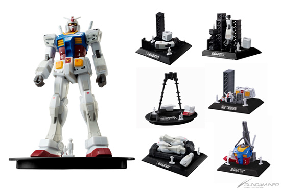 ガンダム立像の建設工程をイメージした、ヴィネット(情景フィギュア)付き玩具菓子「ガンダム大地に建つ」の「ガンダムフロント東京」バージョン!建設シーンをイメージした全6種のヴィネットを合体させる事で全高100mmのガンダム立像が完成するぞ!
