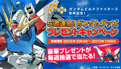バンダイ公式ショッピングサイト「プレミアムバンダイ」で実施中の「ガンダムビルドファイターズ放映記念!ガンダムグッズ5週連続!プレゼントキャンペーン」では、本日10月18日(金)より第3週の応募受付がスタートした。