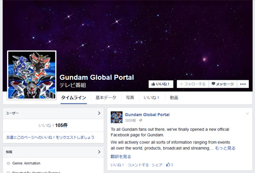 世界各国のガンダム情報を総合的に発信するFacebook公式アカウント「Gundam Global Portal」が、本日1月14日(水)よりオープンした。