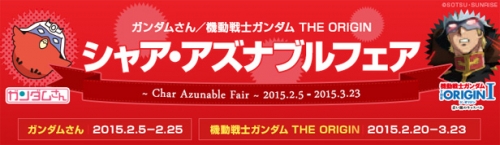 ガンダム公式カフェ「GUNDAM Café」秋葉原店、ダイバーシティ東京 プラザ店、東京駅店、イオンモール幕張新都心店では、明日2月5日(木)から3月23日(月)までの期間限定で「シャア・アズナブルフェア~ガンダムさん/機動戦士ガンダム THE ORIGIN~」が開催される。