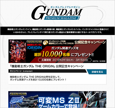 バンダイナムコグループ各社のサービスやコンテンツを共通アカウントで楽しめる「バンダイナムコID」の会員に向けたメールマガジン「ガンダムプレミアムマガジン」の配信が新たにスタートした。