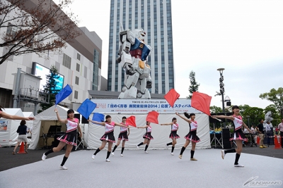 「TOKYO MEETING」では、高校生たちが主役となり実物大ガンダム立像の周辺で、和太鼓や書道パフォーマンス、筝曲、茶道によるおもてなしなど、日本の伝統芸能やライブステージ、バトントワリング、マーチングバンドを行い、日本の多様な文化を紹介。外国人観光客も含めて、臨海副都心を訪れる多くの人々を楽しませる。
