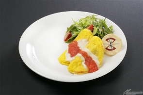 その瞳は心まで見通し、その声は魂に語りかける。その美貌に隠された神秘性には、いかなる戦士も太刀打ちできないでしょう。 ■ひき肉と野菜を炒めた具材を卵で包み焼き上げたオムレツに、特製の明太子チーズソースをかけた人気の玉子メニュー。 |
