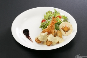 美しい海に囲まれた平和な島国を脅かす戦火は、一人の少女を戦士に変えます。その身に課せられた宿命を、覚悟に変えて。 ■カリッと揚げた海老フライと白身魚に、コク旨のタルタルソースをたっぷりかけた間違いのない海の幸ミックスフライ。 |
