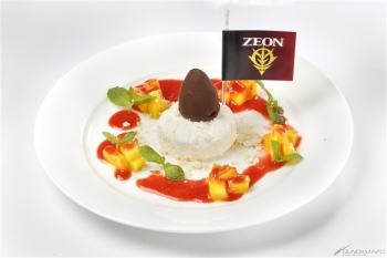 GUNDAM Caféの定番メニュー、「シャアザクライス」がガンダム展特別バージョンで登場!赤い彗星のように、三倍のスピードで食べる必要はございませんのでご安心ください。