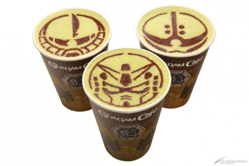 ガンダム公式カフェ「GUNDAM Café」ダイバーシティ東京 プラザ店では 「ガンプラ焼DX~抹茶あんみつ風~」に加え、「抹茶ラテ」も販売されることが決定。ラテはホットとアイスの2種が用意され、ホットには劇中に登場するMSが描かれる。