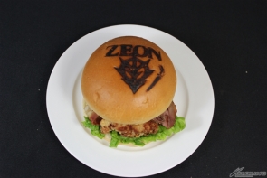 第2弾では、「から揚げ」、「ベーコン」、「パストラミ」と3種類の肉を使用した「トリプル肉バーガー」が登場。バンズの焼き印は、期間限定の「ZEON」柄となる。さらに、『機動戦士ガンダムUC』より「バンシィ」をイメージしたソフトドリンクも引き続き提供される。