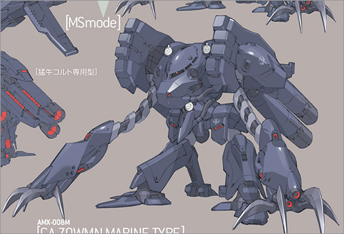 今回は、“猛牛”コルト専用機と一般兵用、それぞれのMS形態/MA形態を紹介。各部の構造や武装を図解するとともに、水陸両用MSの系譜もあわせて解説していく。