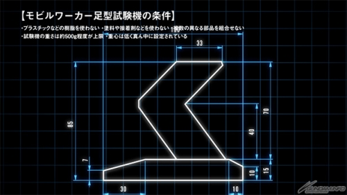 プラスチック製のモビルワーカーの模型を「月面模擬チャンバー」に入れると、真空状態で塗料や樹脂が蒸発して飛散してしまったり、表面がボロボロになって欠け落ちてしまい、真空チャンバー内を汚染する可能性があるため、この試験機は「金属の一体成型で作る」、「塗料、ねじくぎは使わない」、「大きさ、質量は制限内で作る」などの厳しい条件をクリアするために設計された。