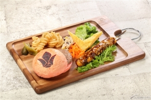 【左】<秋葉原・大阪>優しさと憧れと ~再現プレート~ ポレンタ・ハムとアスパラ炒め・野菜のピクルス・ミートボール・揚げ餃子