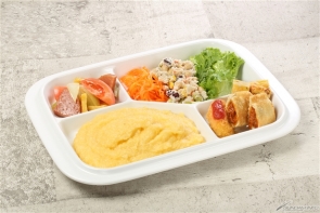 【右】<秋葉原・大阪>鉄華団ごはん ~再現プレート~ ポレンタ・ロモサルダード・雑穀風サラダ・スパニッシュオムレツ・スティックピザ