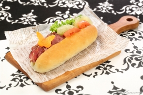 【左】<台場>アリアンロッド艦隊ドッグ ~パストラミビーフとグレープフルーツサラダのハーフ&ハーフドッグ~