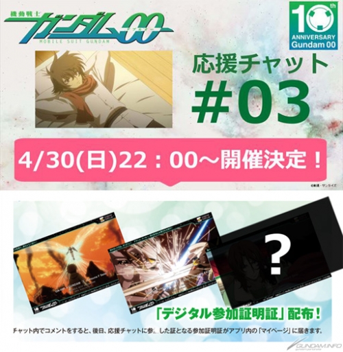 本アプリ内の応援チャット画面で、本編を見ながらチャットを楽しめる企画。放送当時からの熱烈なファンはもちろん、初めて『00』を見る人も、この機会に一緒に応援チャットを楽しもう。