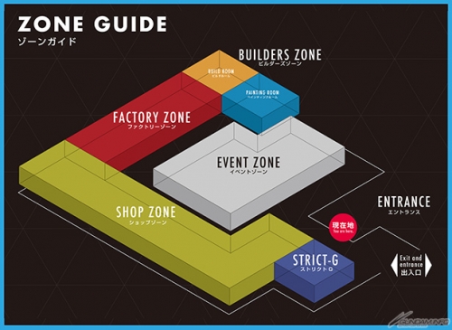 約1983m²(約600坪)の施設内には、約2,000種類の商品を販売する「ショップゾーン」のほか、購入した商品を組み立てることができる「ビルダーズゾーン」、プラモデルができるまでを学ぶことができる「ファクトリーゾーン」、企画イベントや限定品の販売などを行う「イベントゾーン」などが広がる。