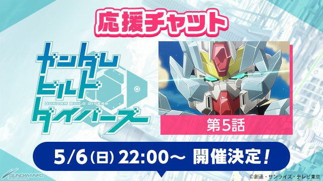 公式ファンクラブアプリ「ガンダムファンクラブ」にて、『ガンダムビルドダイバーズ』第5話応援チャットが、5月6日(日)22:00より開催されることが決定した。