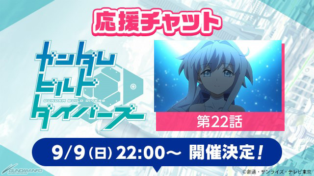 公式ファンクラブアプリ「ガンダムファンクラブ」にて、『ガンダムビルドダイバーズ』第22話応援チャットが、9月9日(日)22:00より開催されることが決定した。