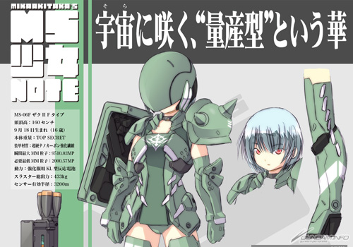 「MS少女NOTE」は、メカニカルデザイナー・明貴美加氏による新しい「MS少女」のイラストを、毎回描きおろしで連載していくというもの。