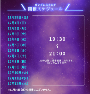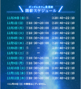 ※変更がある場合は、ガンダムカフェ公式Twitter・公式サイト上にてお伝え致します。
