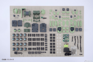 ディスプレイ用台座としても「世界観」を演出するほか、ジオニック整備員やパイロットの彩色済みフィギュアも3体付属し、劇中さながらのMS開発を再現・体感できる。