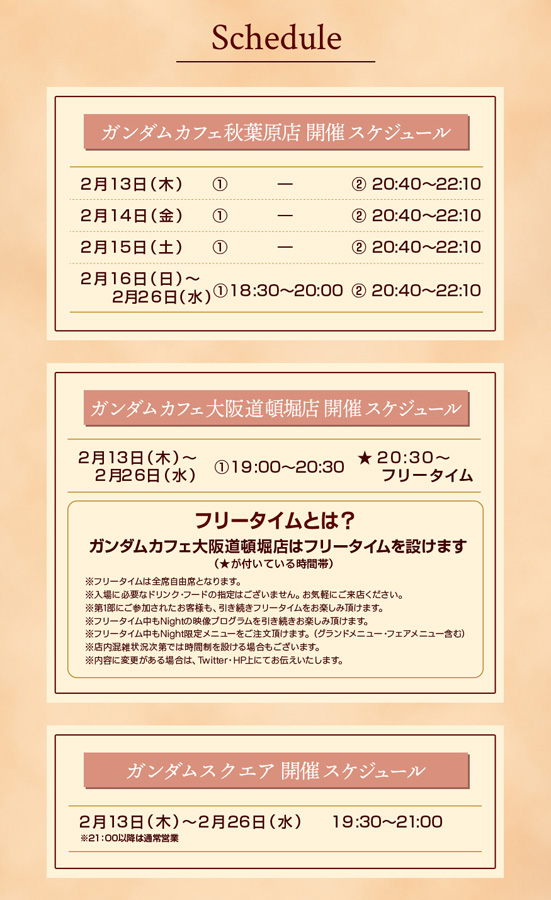 ※変更がある場合は、ガンダムカフェ公式Twitter・公式サイト上にてお伝え致します。