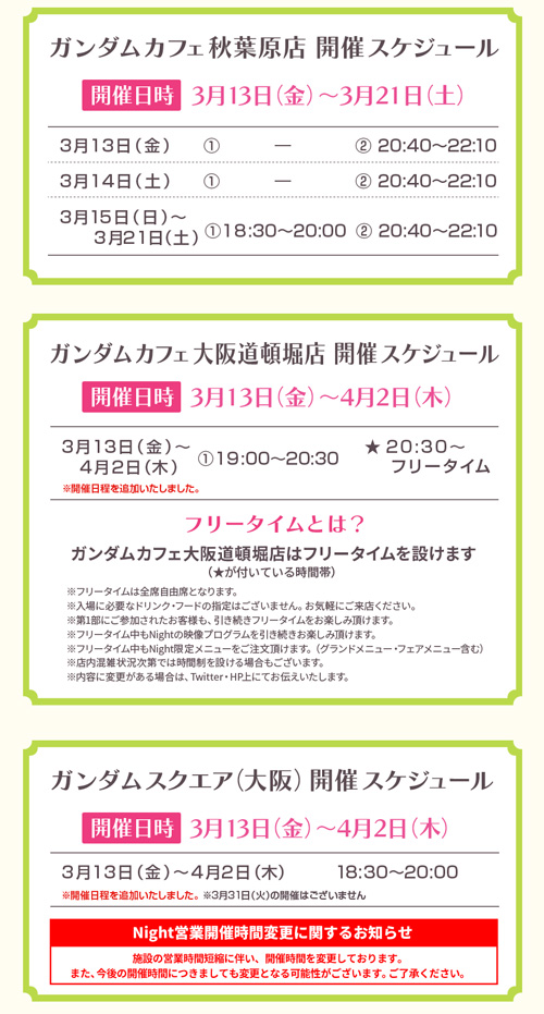※変更がある場合は、ガンダムカフェ公式Twitter・公式サイト上にてお伝え致します。