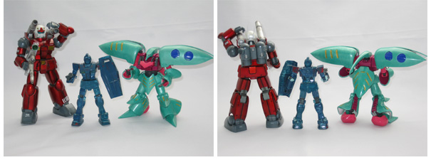 ガンダム好きの不器用な親父とガンダム好きな飽き症の娘がお互い好き放題に製作しました。飽き症の娘をなんとかその気にして製作させるのにほんと苦労しました(笑)。あと、娘の色使いの発想力に負けないよう頑張ってみました…