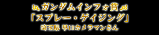高度なテクニックを用いた作品や、面白いアイデアが盛り込まれた作品など、 趣向を凝らした作品を多数ご応募頂き、本当にありがとうございました。 まだ手の小さいお子さんたちが、びっくりするようなテクニックを持っていることに 編集部一同驚嘆いたしました。 そして、なにより今回はどの作品からもご家族でガンプラを楽しんでいる様子が伝わってきて、 できれば全ての作品に賞を差し上げたいという気持ちをおさえることに大変苦労いたしました。 あらためてすべてのご応募いただいた方々に感謝いたします。 ガンダムインフォでは今後もガンプラコンテストの開催を、ぜひ続けて行きたいと考えております。 その際は、また皆様からのご応募を心よりお待ちしております。 今後ともガンプラを、そしてガンダムインフォをどうぞよろしくお願いいたします。 最後に今回ご参加頂いた皆様、ならびに審査員としてご協力頂いたバンダイホビー事業部の川口名人、 そして告知にご協力頂いた「電撃ホビーマガジン」、「月刊ホビージャパン」編集部の方々に、 重ねて厚く御礼申し上げます。