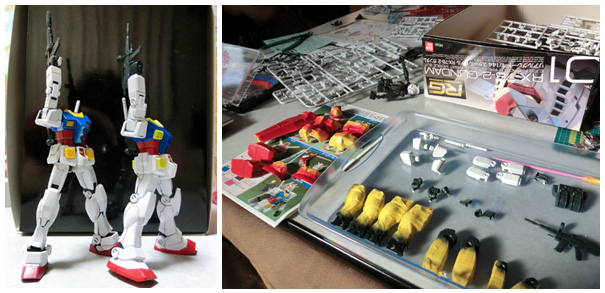 母が今回初めてガンプラを作り、完成した後2日ほど肩と腕が痛いといっていました。ガンプラを湯に入れるとき、プラスチックなのでどうしても浮かんでしまい、固定するのが大変でした。作るときに中におもりを仕込んでおけば良かったと学びました。
