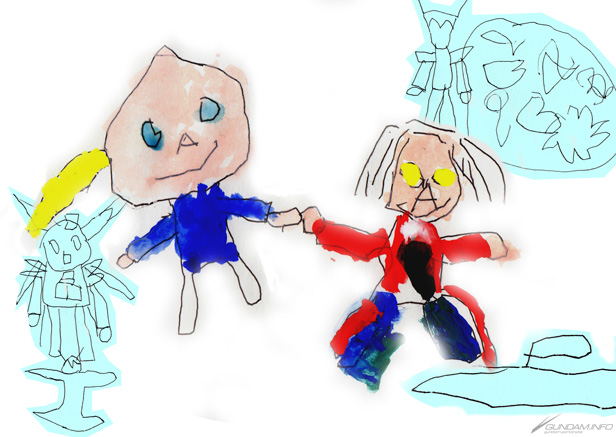 ガンダムAGEが大好きな5歳児が描きました。アセムとゼハートです。