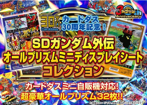 現在プレミアムバンダイで絶賛予約受付中の「カードダス30周年記念 SDガンダム外伝 オールプリズム ミニディスプレイシートコレクション」です。