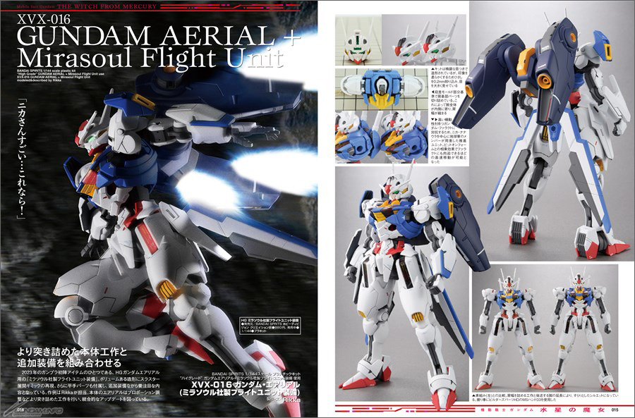 巻頭を飾る作例には、プロモデラーのRikka氏が製作した「ガンダム・エアリアル(ミラソウル社製フライトユニット装備)」を掲載!プロポーション調整など、より突き詰めた工作を行い、統合的なアップデートを図っております。