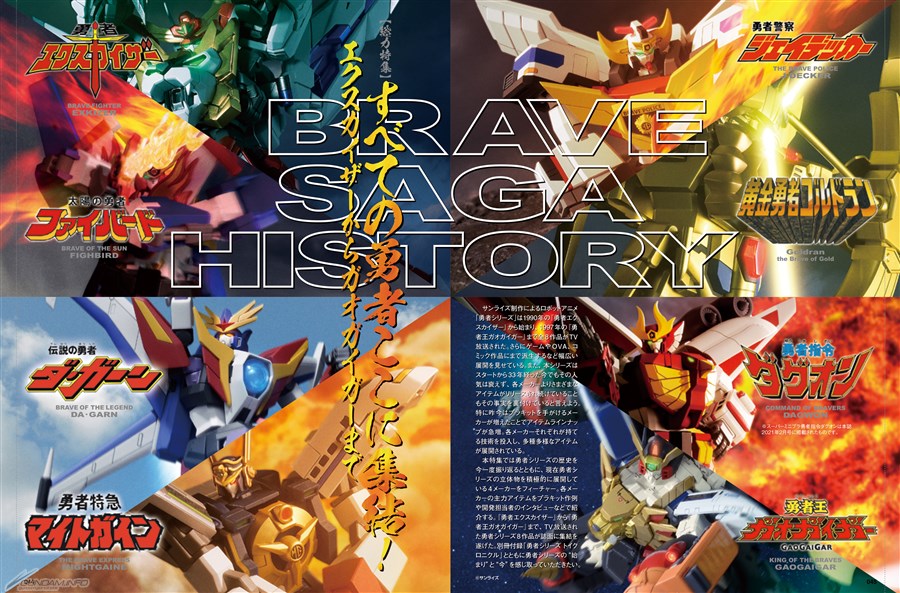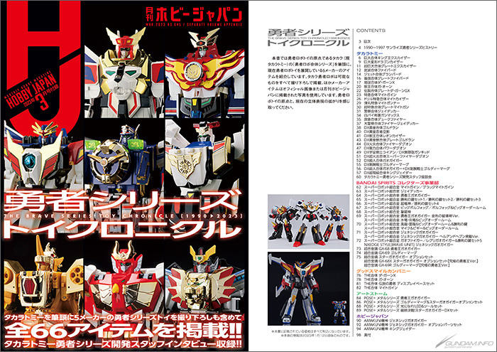 勇者シリーズの歴史を今一度振り返るとともに、現在勇者シリーズの立体物を積極的に展開している4メーカーをフィーチャー!各メーカーの主力アイテムを、プラキット作例や開発担当者のインタビューなどでご紹介いたします!