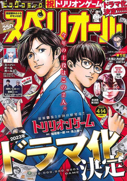 このほか、超ビッグニュースで表紙・巻頭カラーを飾る大人気作「トリリオンゲーム」(原作:稲垣理一郎/作画:池上遼一)、話題の巨弾新連載第2回「MUJINA IN TO THE DEEP」(浅野いにお)、レジェンドラーメン漫画「らーめん再遊記」(原作:久部緑郎/作画:河合 単)、話題の結婚サスペンス「夏目アラタの結婚」(乃木坂太郎)、予定不調和ハーレム「スーパーボールガールズ」(原作:金城宗幸/作画:平本アキラ)などなど……、今号もオモシロが詰まった「スペリオール」をぜひ手に取ってみてください!
