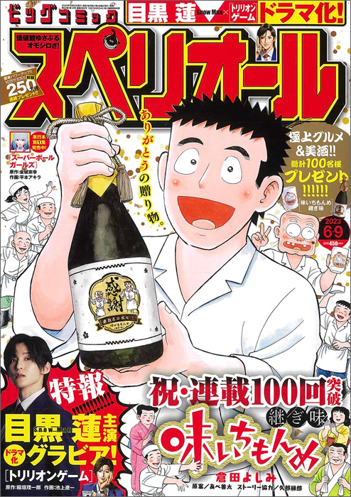 表紙は連載100回を突破した「味いちもんめ継ぎ味」(倉田よしみ/原案:あべ善太/ストーリー協力:久部緑郎)、巻頭カラーは目黒 蓮さん(Snow Man)主演で7月期地上波実写ドラマが放送される大人気作「トリリオンゲーム」(原作:稲垣理一郎/作画:池上遼一)が飾る。