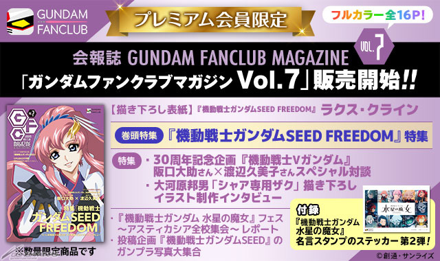 公式アプリ「ガンダムファンクラブ(GFC)」の会報誌バックナンバー「ガンダムファンクラブマガジン Vol.7」が、本日3月29日(月)より「ガンダムファンクラブストア」で販売開始された。