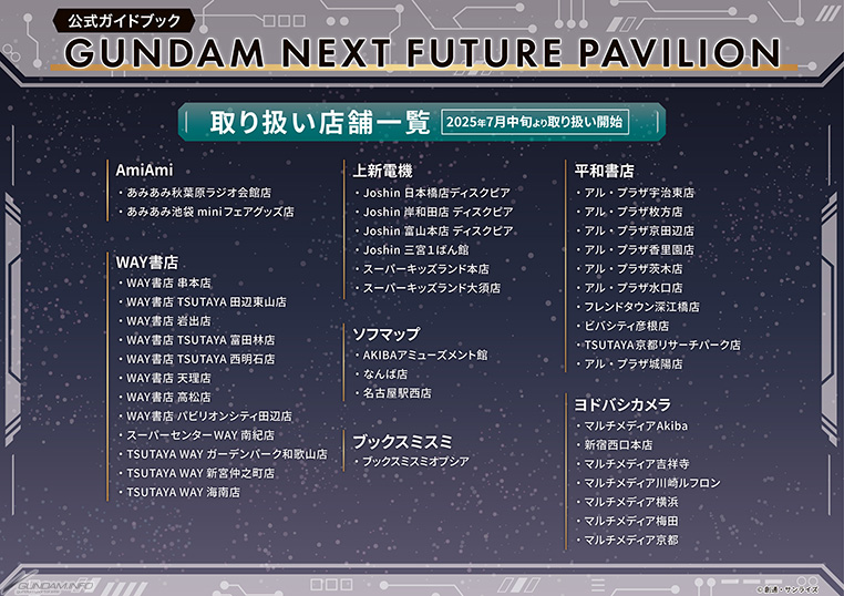 「GUNDAM NEXT FUTURE PAVILION」公式ガイドブックが、7月中旬よりAmiAmi、ヨドバシカメラほか取り扱い店舗・通販サイトにて販売されることが決定した。価格は3,850円(税込)。